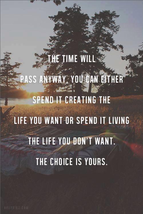 “The time will pass anyway. You can either spend it creating the life you want or spend it living the life you don’t want. The choice is yours.”
